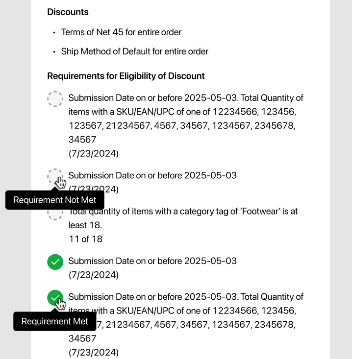 A hover message of ‘Requirement Met’ or 'Requirement Not Met' was also added.